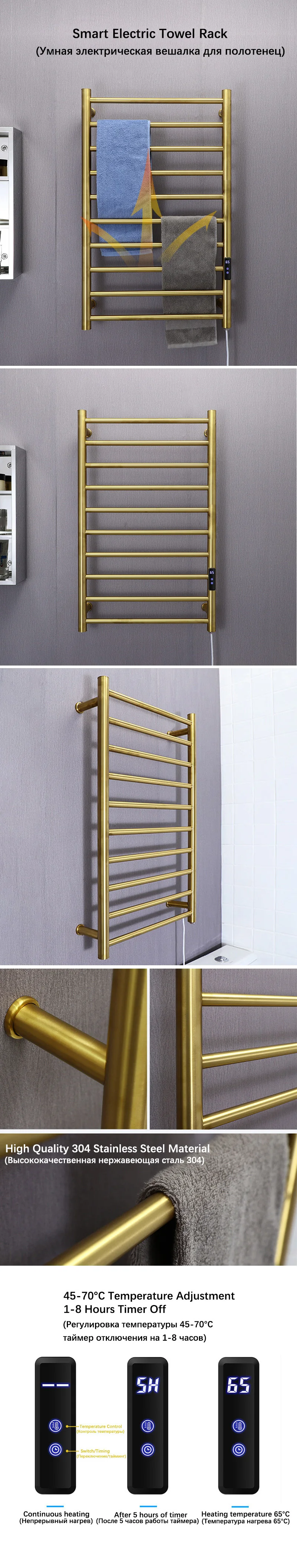Полотенцесушитель для ванной комнаты.Электрическая вешалка для полотенец из нержавеющей стали 304.Скрытые/открытые провода.Умный полотенцесушитель.110V/220V