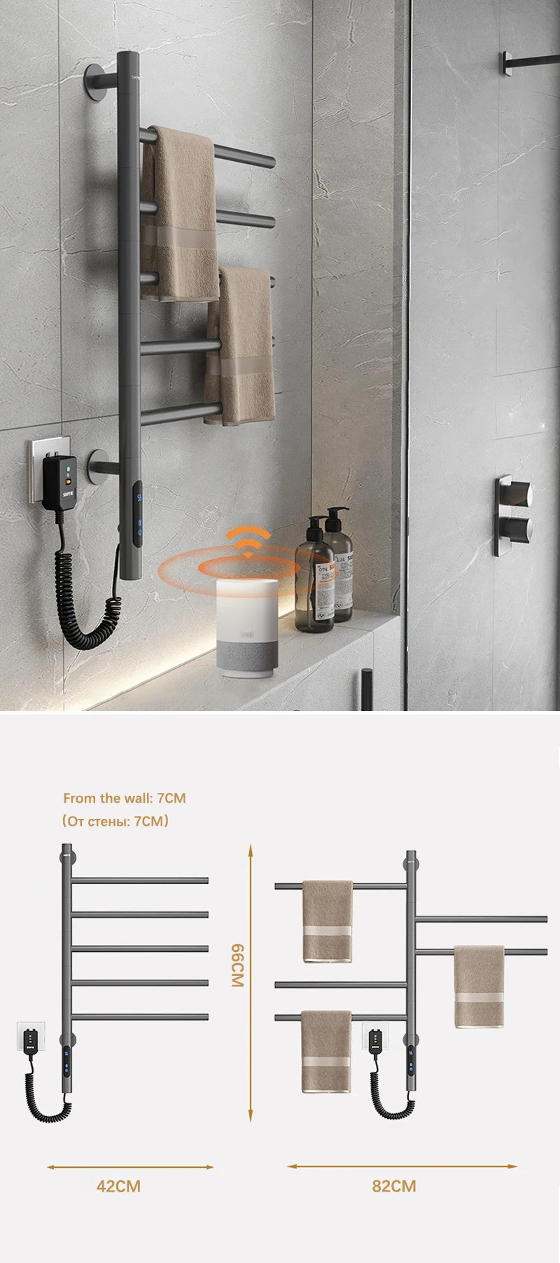 Подсказка:Использование электрических вешалок для полотенец, помимо того, что вы можете использовать сухие полотенца каждый день, также может эффективно снизить риск размножения бактерий во влажной среде ванной комнаты. Кроме того, вы также можете сушить детскую одежду, банные полотенца и т. Д.
