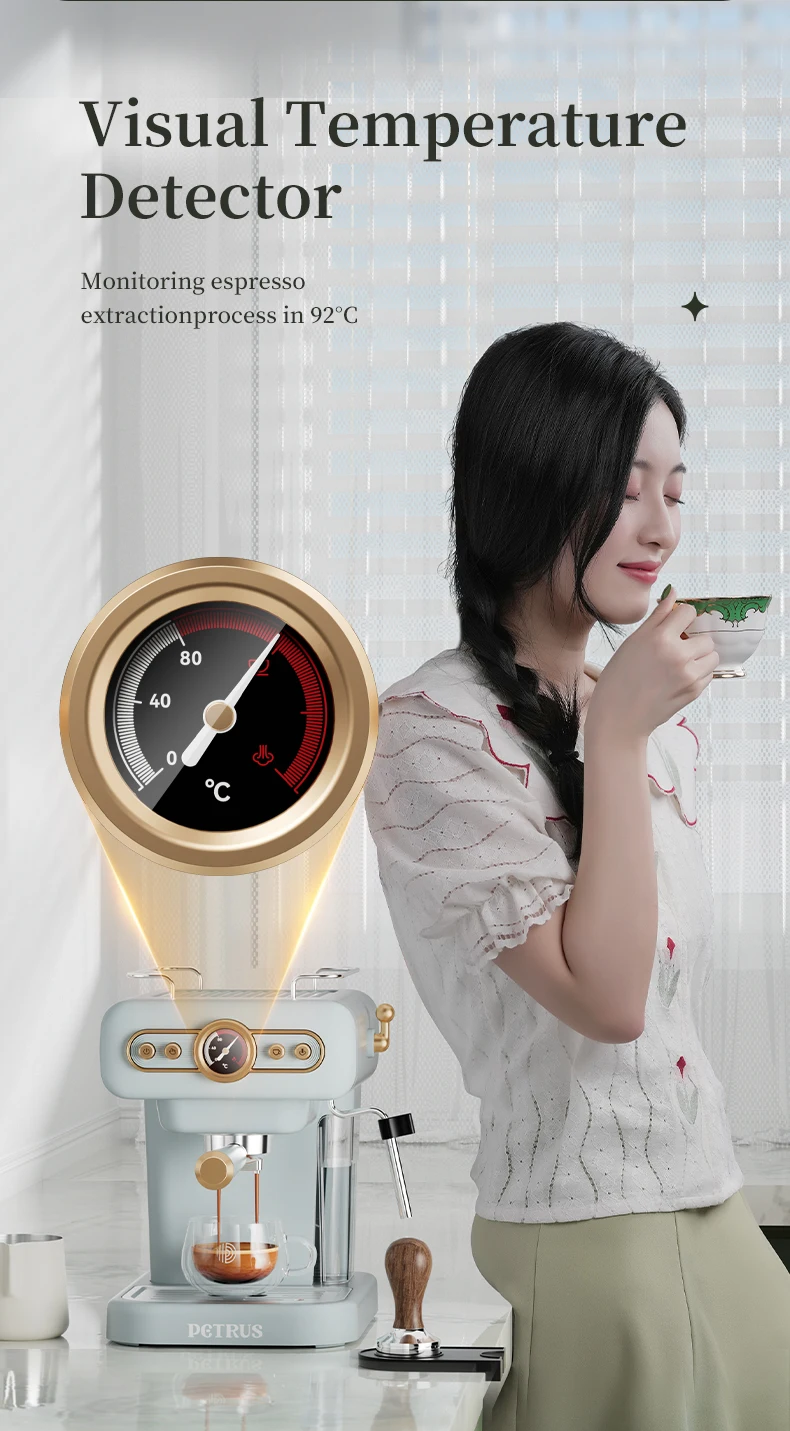 Кофеварка Petrus Эспрессо Кофемашина Латте Капучино Кофеварка 20 бар Полуавтоматическая Эспрессо-машина с паровым молочным пузырем PE3322 【 1 год гарантии 】