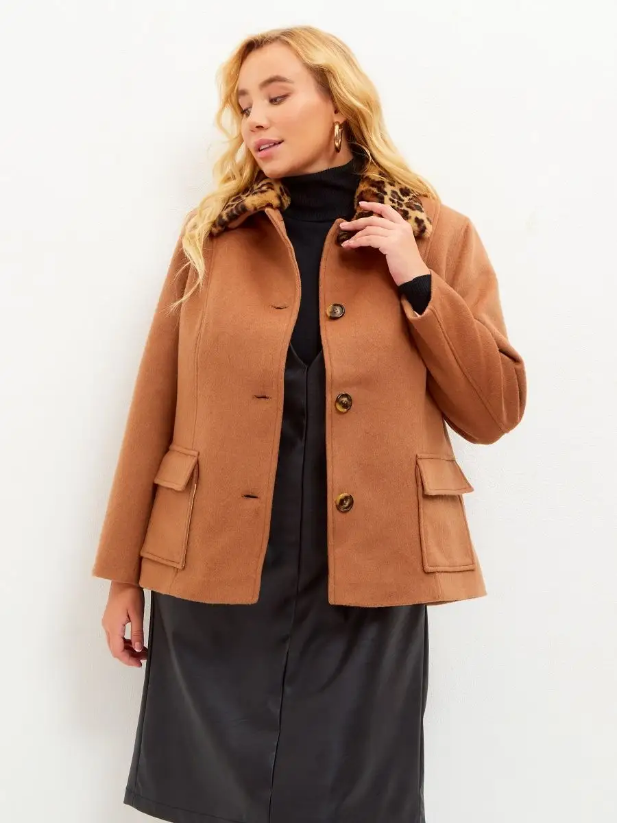 Описание: Пальто женское теплое укороченное с отстегивающимся меховым воротником от бренда Corline - это стильная вещь на осень или весну сезона 2023. Осеннее полупальто не приталенное, а, наоборот, широкое прямого кроя. В такой женской одежде будет комфортно всем девушкам с любой фигурой, в том числе беременным и кормящим мамам. Классическая короткая модель застегивается на пуговицы. Верхняя одежда идет без капюшона и без пояса. Спереди два накладных кармана. Можно носить зимой до - 10 градусов, так как шерсть в составе ткани согреет Вас и не даст замерзнуть. Полупальто с меховым воротом представлено в больших размерах, подойдет для полных женщин, девушек и девочек подростков как высоким, так и невысоким. Размерный ряд представлен от 50 до 60 размерах. На данный момент шерстяное полупальто представлено в двух расцветках. Одна из весенних новинок в бежевом цвете с принтом «гусиная лапка» похожа на клетку и воротником из искусственного меха в стиле шубы барашек или чебурашка. Вторая в цвете шоколад с меховым леопардовым воротом. Молодежная одежда с принтом леопард очень популярная также как тедди. Любая из этих моделей будет отлично сочетаться с классикой, деловой одеждой, спортивным стилем, подойдет под любой женский образ. Нестандартные расцветки смотрятся нарядными и не обыденными, Вы всегда будете в центре внимания. Это база в Вашем гардеробе, она заменит Вам стеганные пуховики или дутые куртки. Те же кожаные плащи, бомберы, трикотажное двубортное драповое полупальто. Оно невероятно мягкое и приятное на ощупь, не продувается, прекрасно сохраняет тепло.