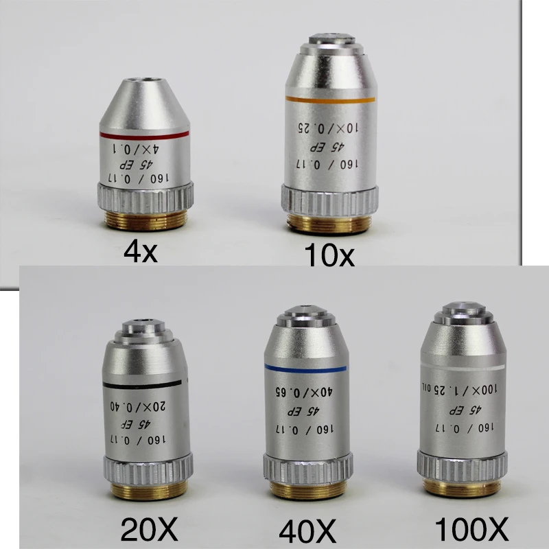 Полуплан ахроматический объектив 4X 10X 40X 100X 160/0.17 для биологического микроскопа EP