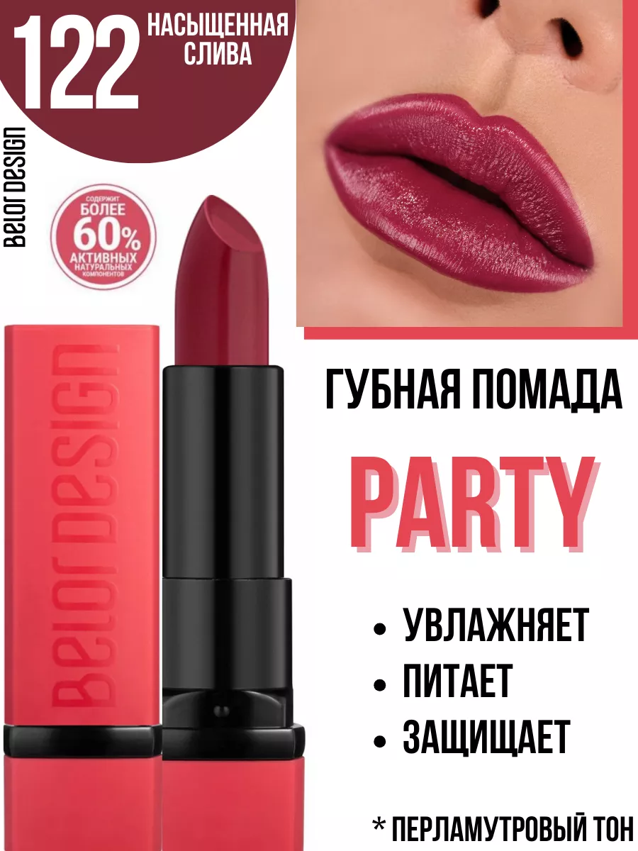 Помада для губ PARTY увлажняющая тон 122 насыщенная слива