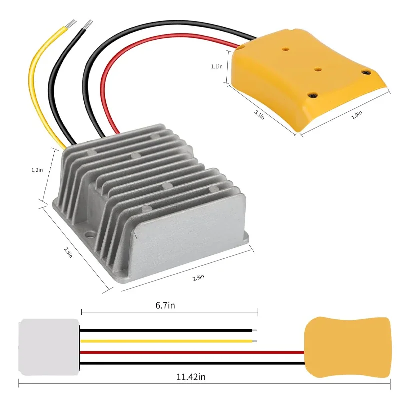 Понижающий преобразователь напряжения постоянного тока для аккумуляторной док-станции DeWalt/Milwaukee, 20 в, 18 В до 12 В