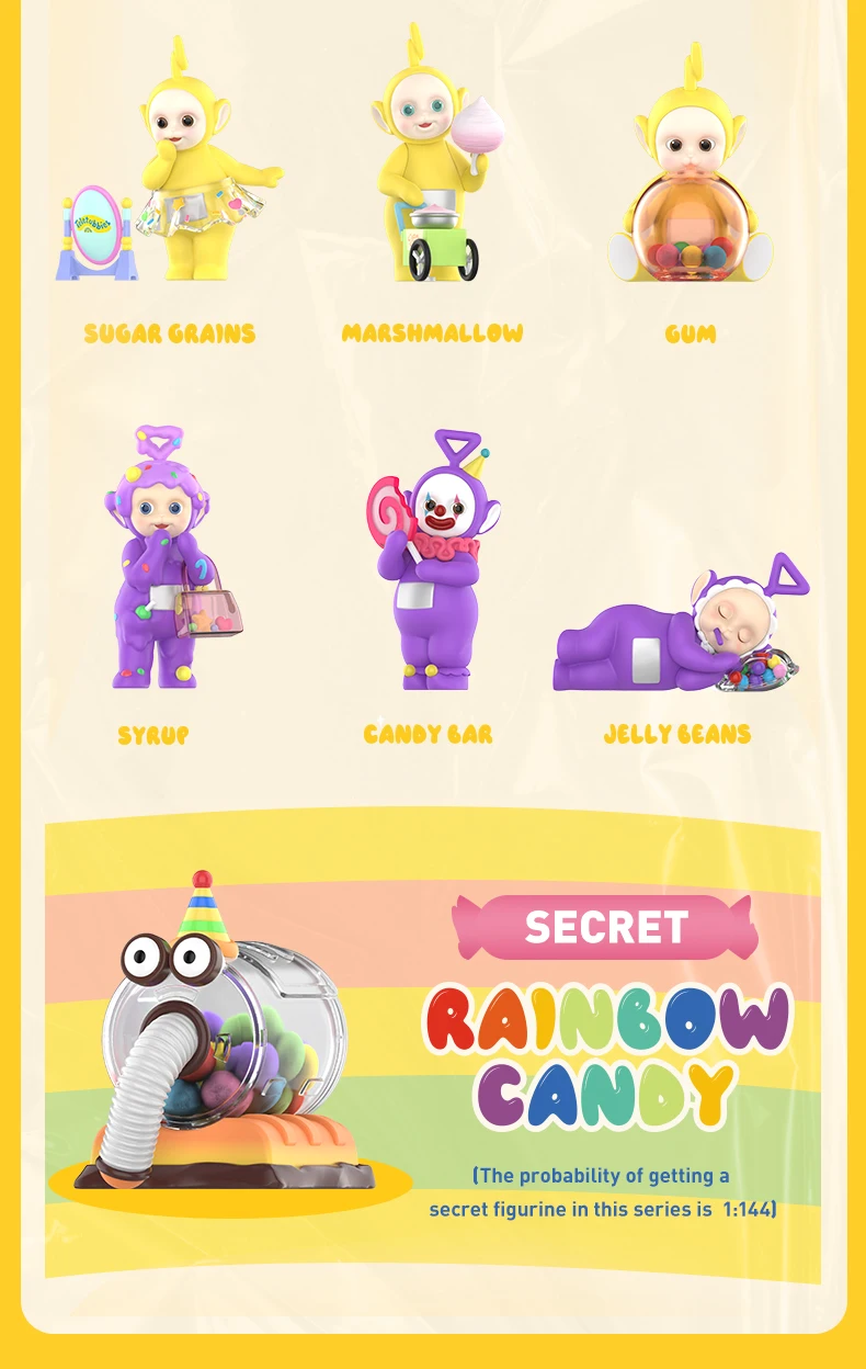 Телепузики Fantasy Candy World Series содержит 12 обычных продуктов, 1 секретный продукт. Весь набор содержит 12 слепых коробок.