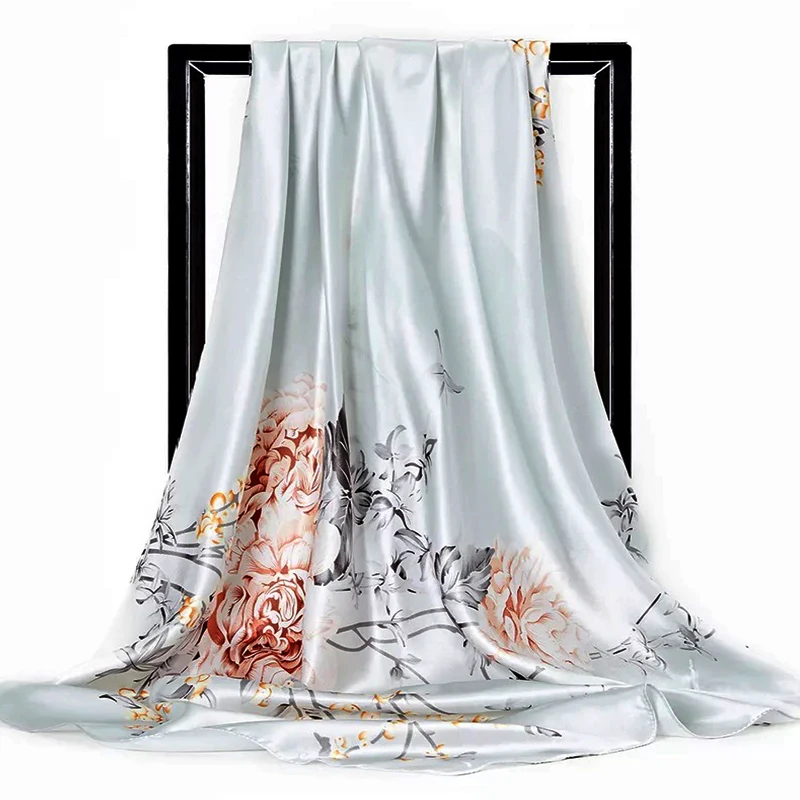 Popular Shawls Fashion Flower 90X90CM Silk Scarves Europe And America Print Square Kerchief Four Seasons New Sunscreen Bandannas