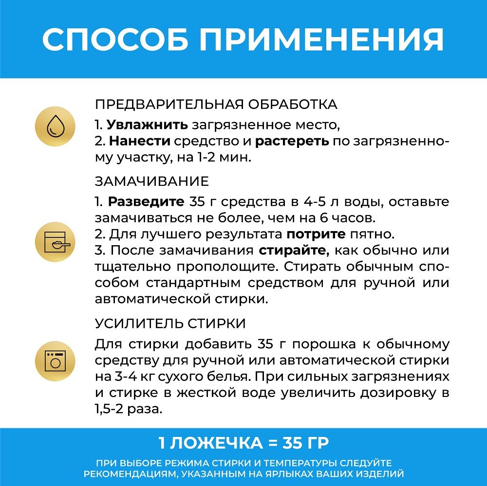 Особенности применения Отбеливание, Экосредство, Эффективен в холодной воде