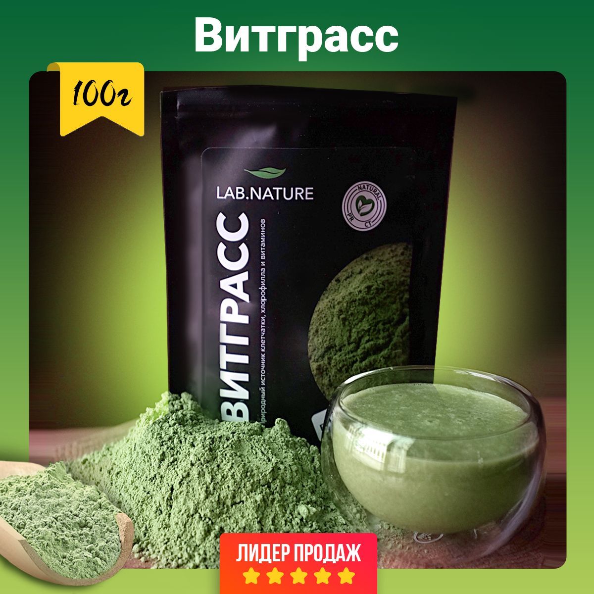 Порошок Витграсс (измельченные сушеные ростки пшеницы, здоровое питание, сухой суперфуд, для напитков и смузи), 100 грамм