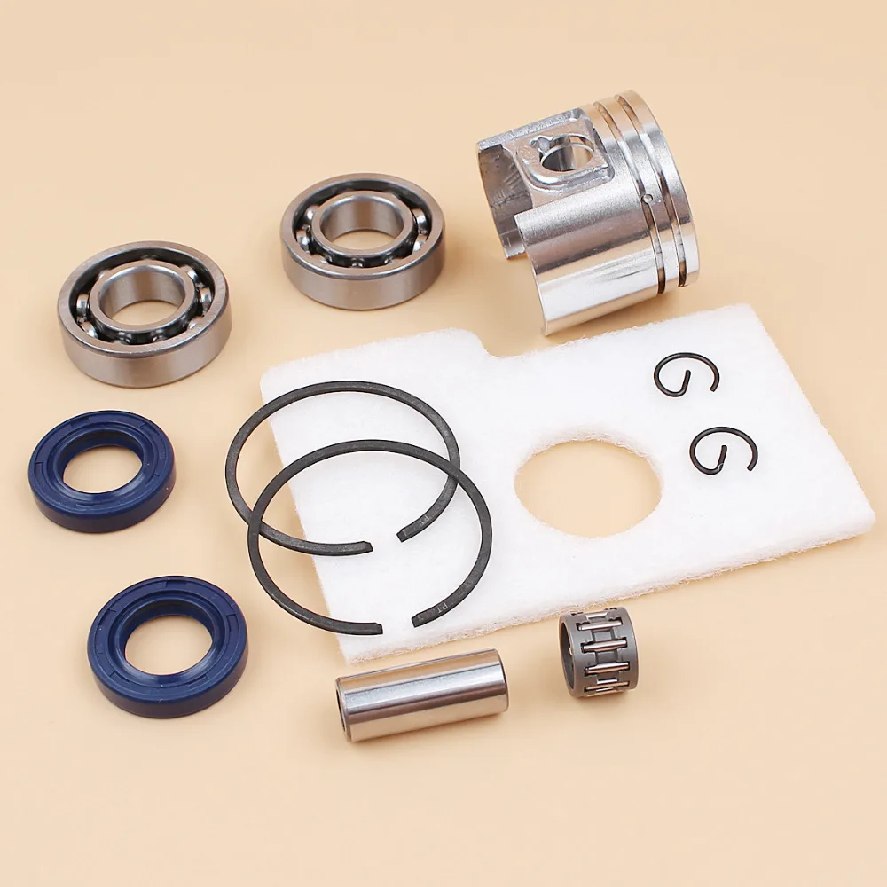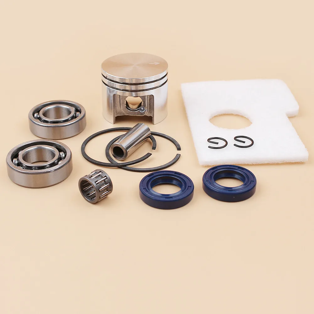Включает:Поршень-1 шт., штифт-1 шт., кольцо-2 шт., зажим-2 шт., игольчатый подшипник-1 шт., воздушный фильтр-1 шт., кривошипный подшипник-2 шт., сальник-2 шт.