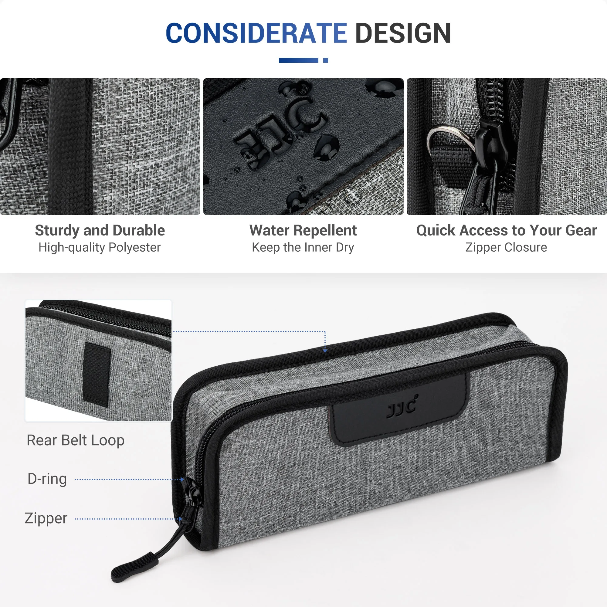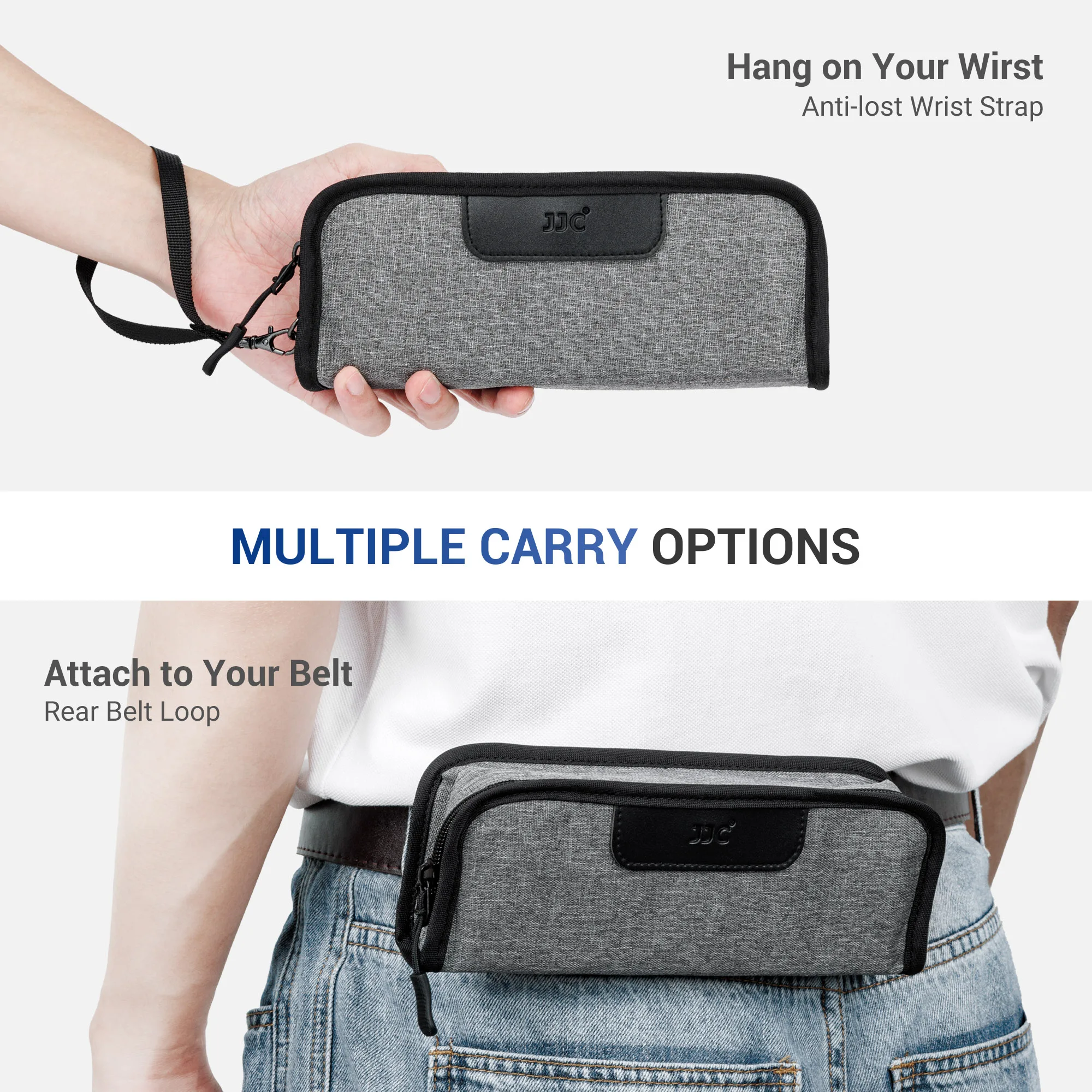 Сумка открывается и закрывается на молнию для удобства использования. Легкодоступная конструкция позволяет быстро получить доступ к фильмам. Внешний вид высококачественного полиэстера и мягкого материала из микрофибры защищает пленки от пыли, брызг воды, ударов и царапин. Дополнительный внутренний карман для хранения мелких предметов, таких как ткань для чистки, ручка для чистки и т. Д., Осветляя дорожное бремя. Петля для ремня на задней части сумки позволяет закрепить на ремне. Сумку можно прикрепить к прилагаемым ремешкам с защитой от потери для безопасной переноски.