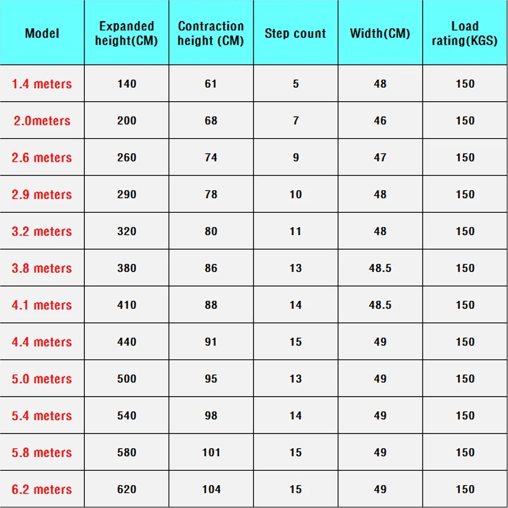 7. Do not stand on the steps within 1 meter from the top of the ladder during operation, always keep a safety height of 1 meter, let alone climb the highest support point at the top