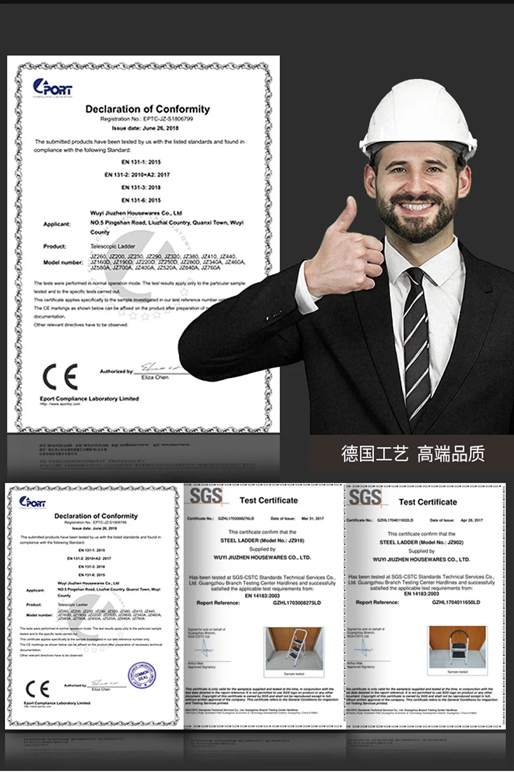 1. Ensure that all rivets, bolts, nuts and moving parts are tightly connected, the ladder column and step are firm and reliable, and the extension circlip and hinge are in good working condition