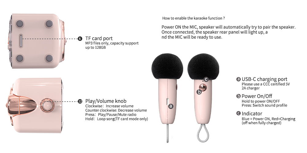 Fairy OK оснащен микрофоном, вы можете использовать 7 звуковых режимов с микрофоном-акустическим режимом, режимом monster, режимом baby voice, режимом song god, режимом studio, режимом host, поп-режим. Эти шесть режимов звука делают пение в разных случаях более интересным.