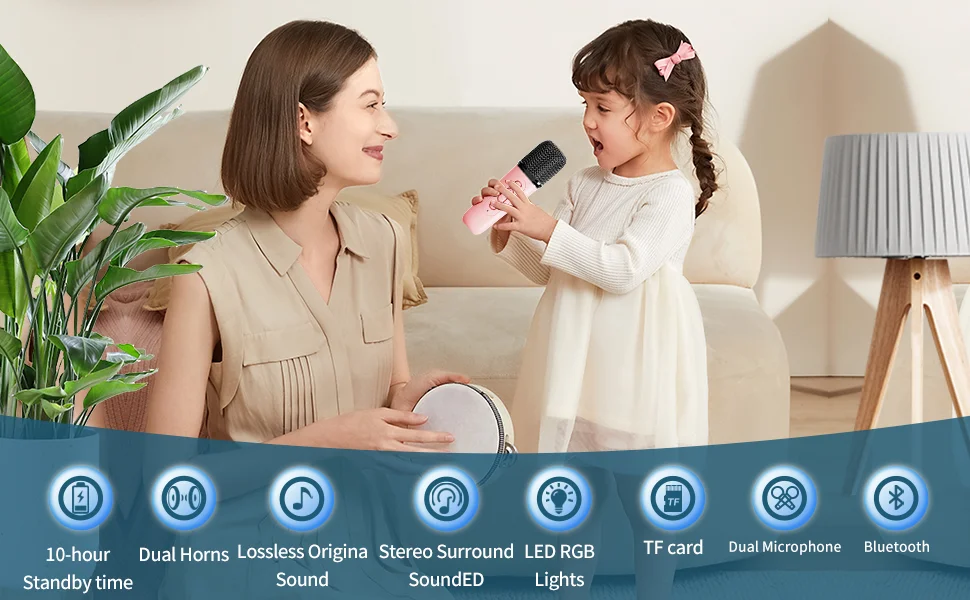 • 【Забавные красочные светы】 6 светодиодных ламп RGB, 5 режимов окружающего освещения, светодиодные фонари, которые бьются в ритме музыки. Используется только как динамик Bluetooth, наслаждайтесь прекрасным пением. Детский караоке-автомат-идеальный подарок на день рождения и Рождество для детей.