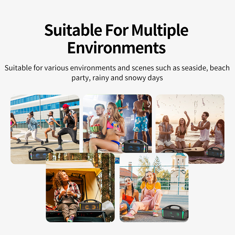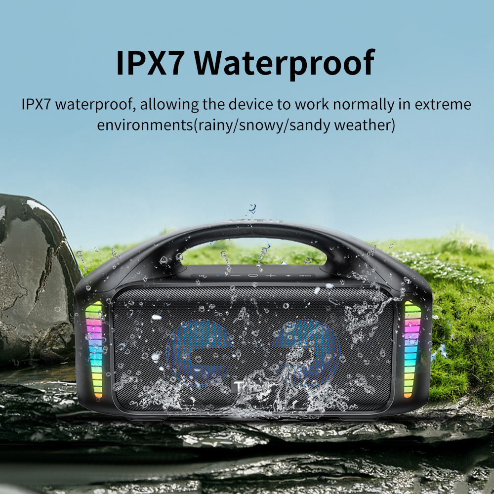Водонепроницаемый динамик IPX7 с функцией Powerbank: Открытый водонепроницаемый динамик дает вам свободу вечеринок от бассейна до сияющего моря и везде между ними; Не беспокойтесь о разряженном аккумуляторе, беспроводной динамик Bluetooth может заряжать Интеллектуальные устройства как внешний аккумулятор.