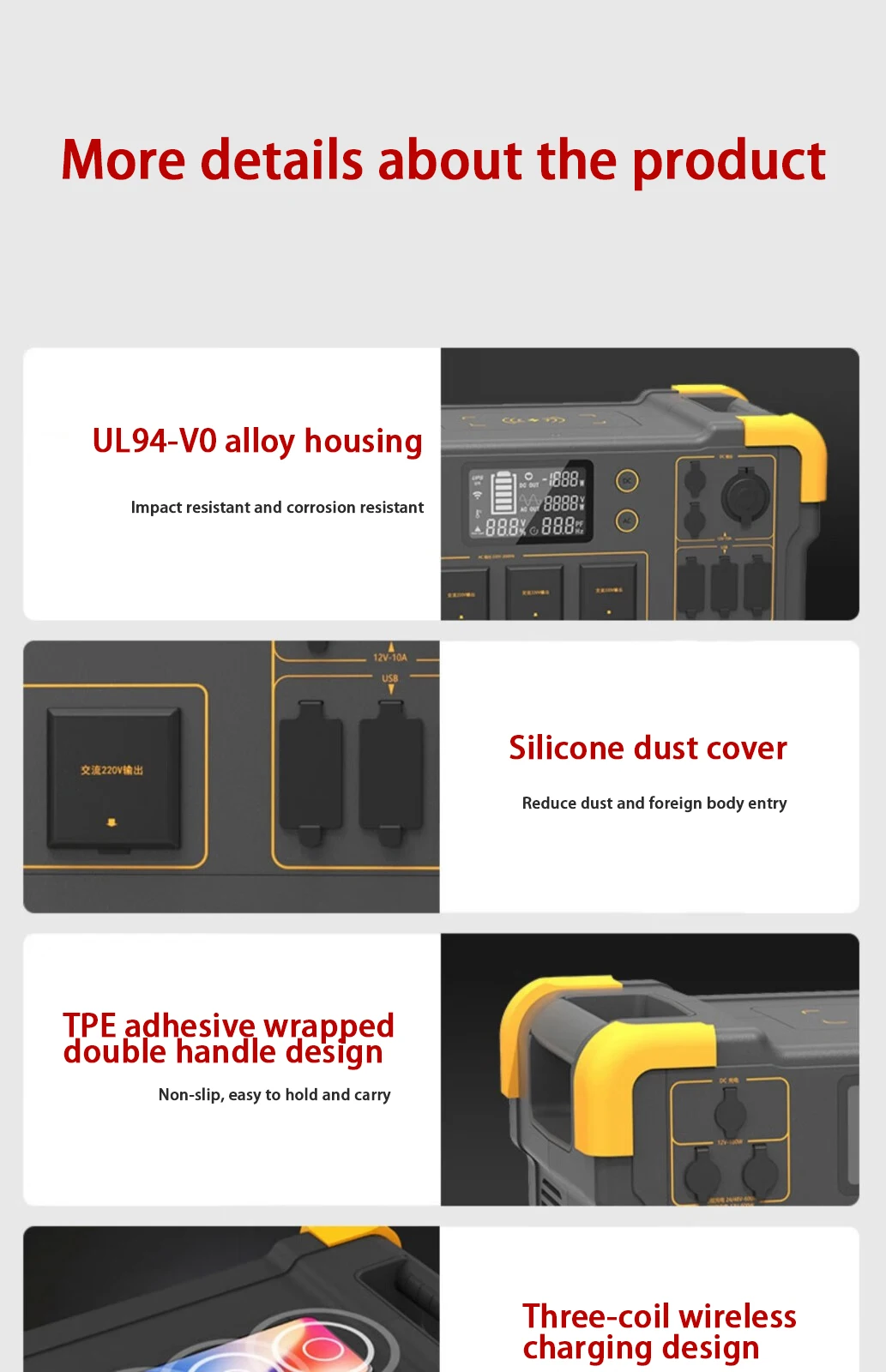 [1920 Втч 200 Вт для всей бытовой техники] Обладая более высокой мощностью 2000 Вт и мощностью 1920 Втч, E2000 имеет 4 * стандартных розетки переменного тока с чистой синусоидой, которые обеспечивают дополнительную мощность для одновременного питания большего количества приборов переменного тока (кофеварка, электрические дрели, электрическая сковорода для микроволновой печи, фен, электрический чайник, холодильник, стиральная машина и т. д.)