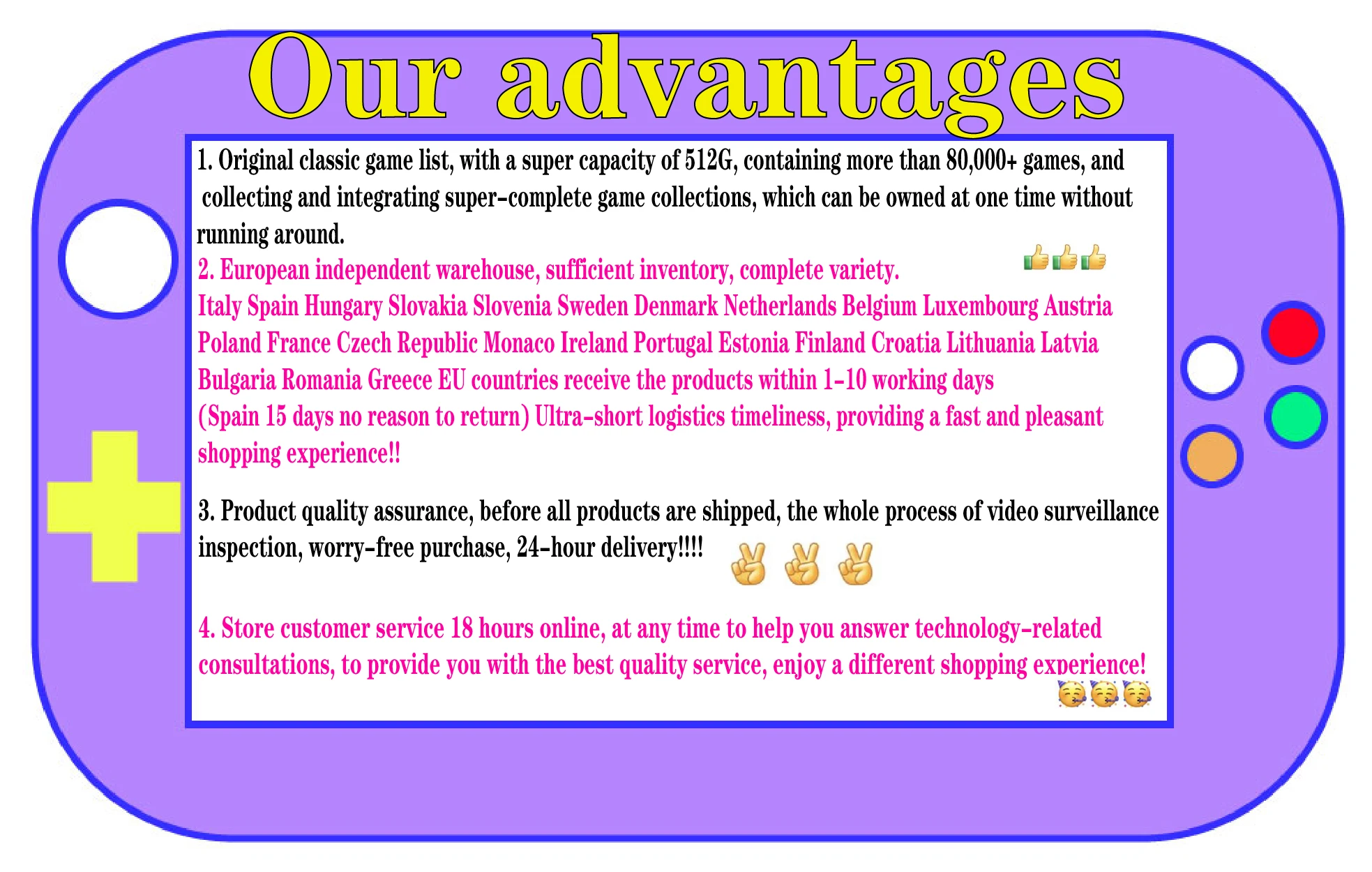 1. Оригинальный список классических игр с супер-емкостью 512 ГБ, содержащий более 80 000 игр, а также сбор и интеграцию супер-полных коллекций игр, которыми можно владеть одновременно, не бегая.