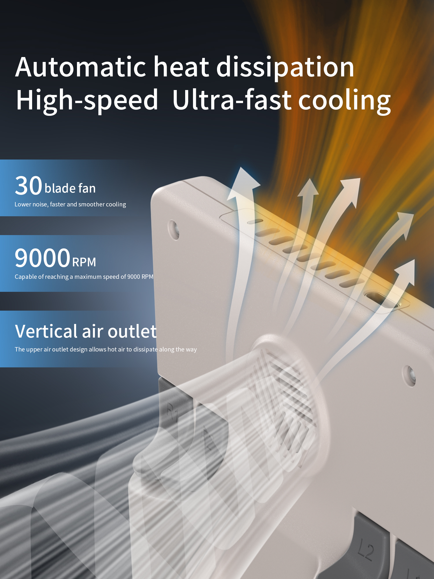 Встроенный вентилятор может рассеивать тепло во время использования, так что устройство можно использовать