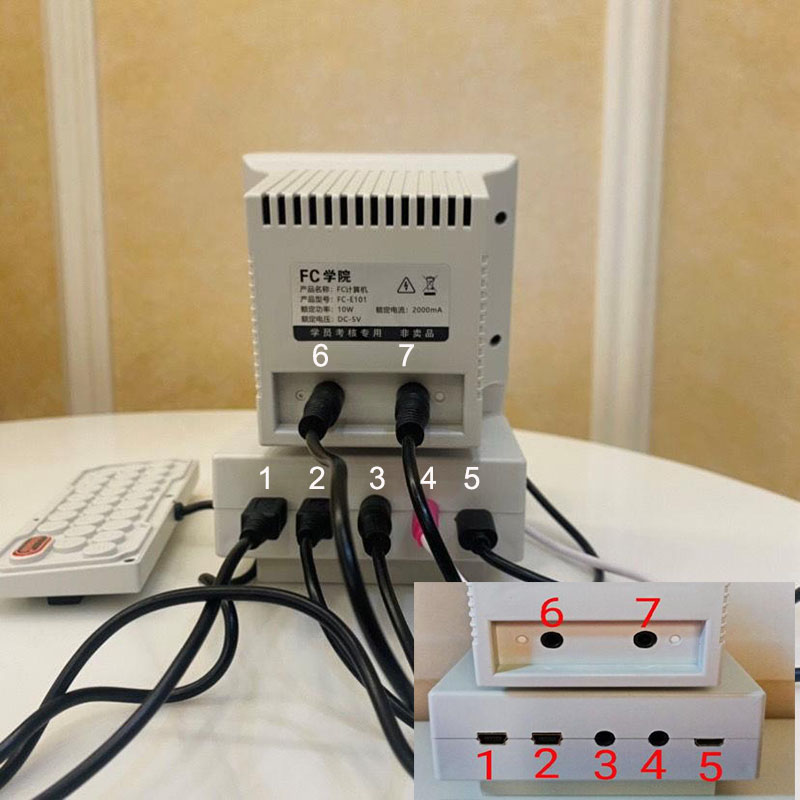 Видеовыход подключен к интерфейсу № 3 (экран небольшого компьютера можно проецировать на домашний телевизор или дисплей, а формат сигнала-AV).
