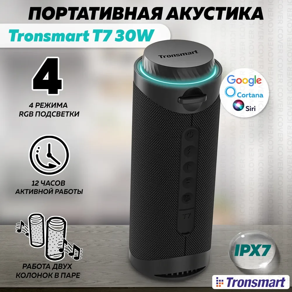 Tronsmart T7 - это стильная и компактная беспроводная акустическая система, которая прекрасно подойдёт для прослушивания музыки на свежем воздухе, например, во время прогулки с друзьями. Вместительный аккумулятор позволяет использовать колонку до 12 часов.