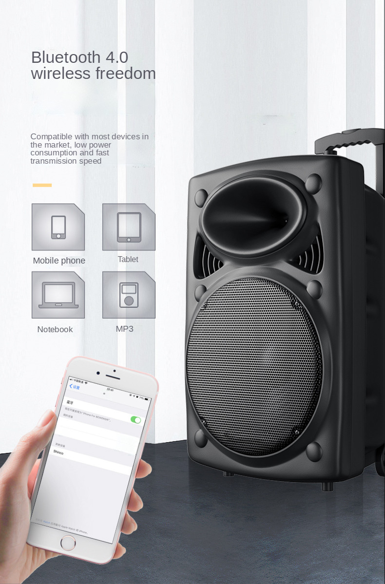 150 Вт Bluetooth динамик Колонка 15-дюймовый сабвуфер K песня Бумбокс открытый квадратный танец саундбокс беспроводной микрофон TF AUX U диск