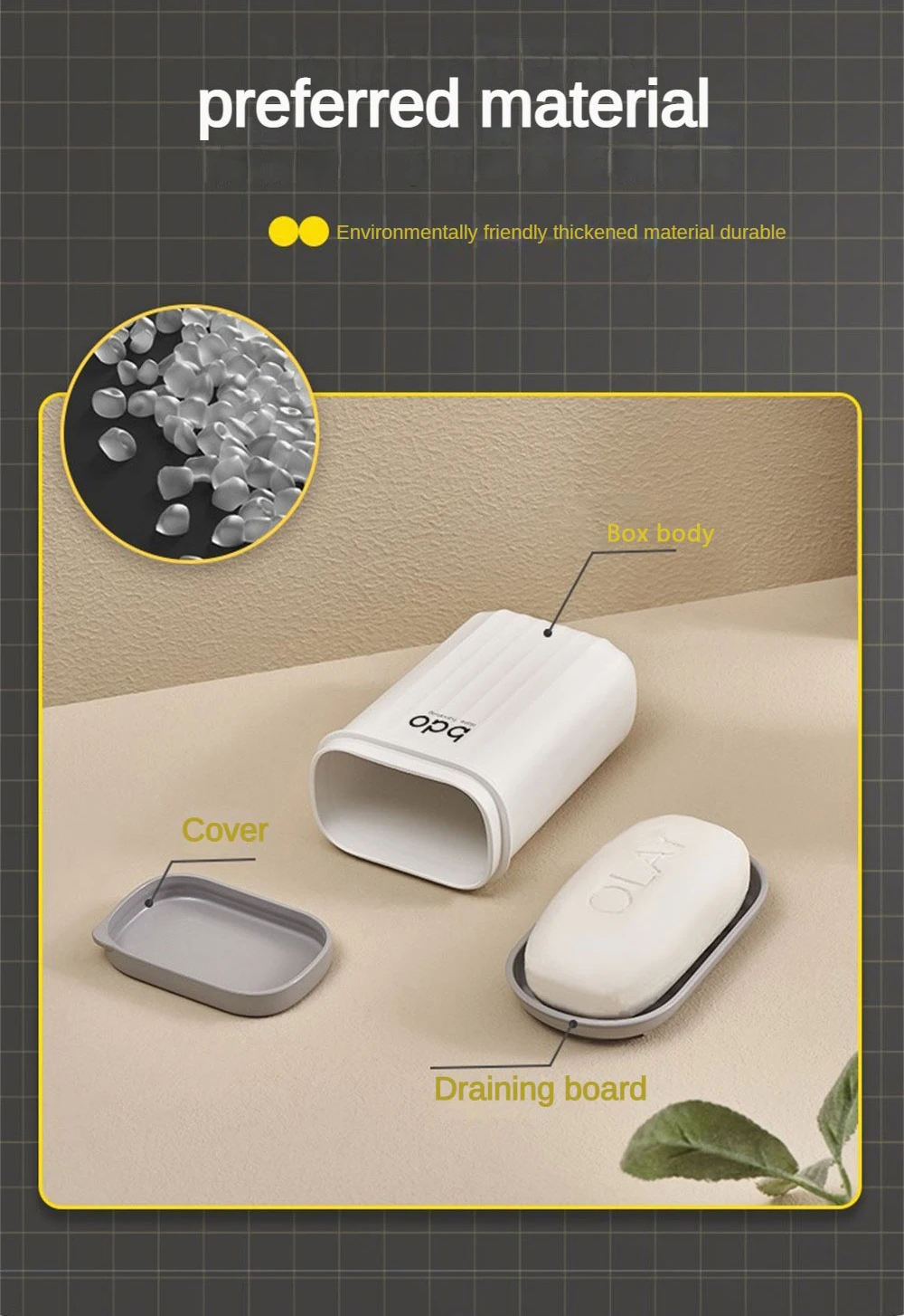 1. Простая и практичная, наша дорожная мыльница изготовлена из твердых материалов. Он прочный, легко чистится и сушится. Вы можете безопасно использовать его в течение длительного времени.