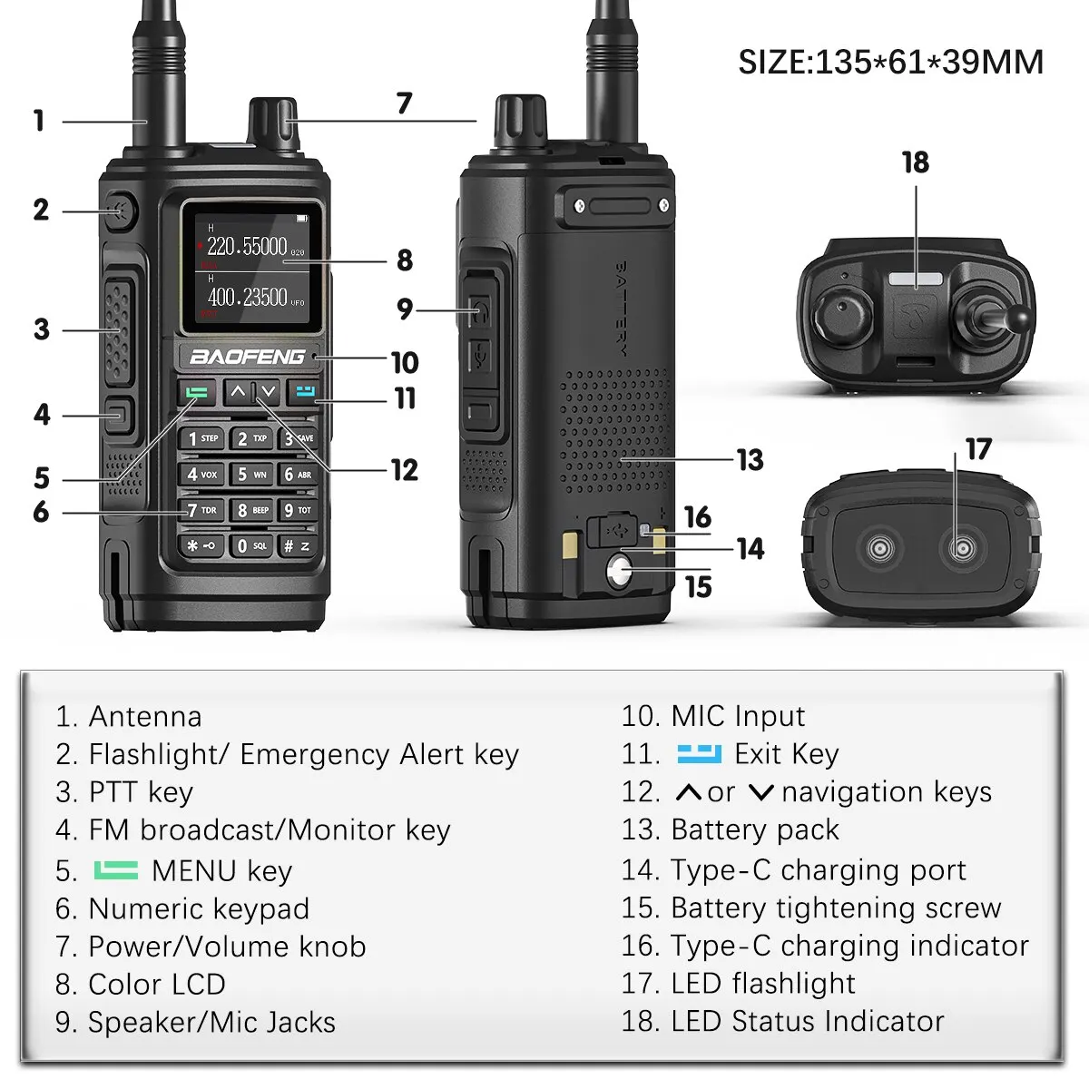 • Зарядка Type-C:Заряжайте рацию быстро и легко с помощью зарядного устройства Type-C, устраняя необходимость в нескольких кабелях.