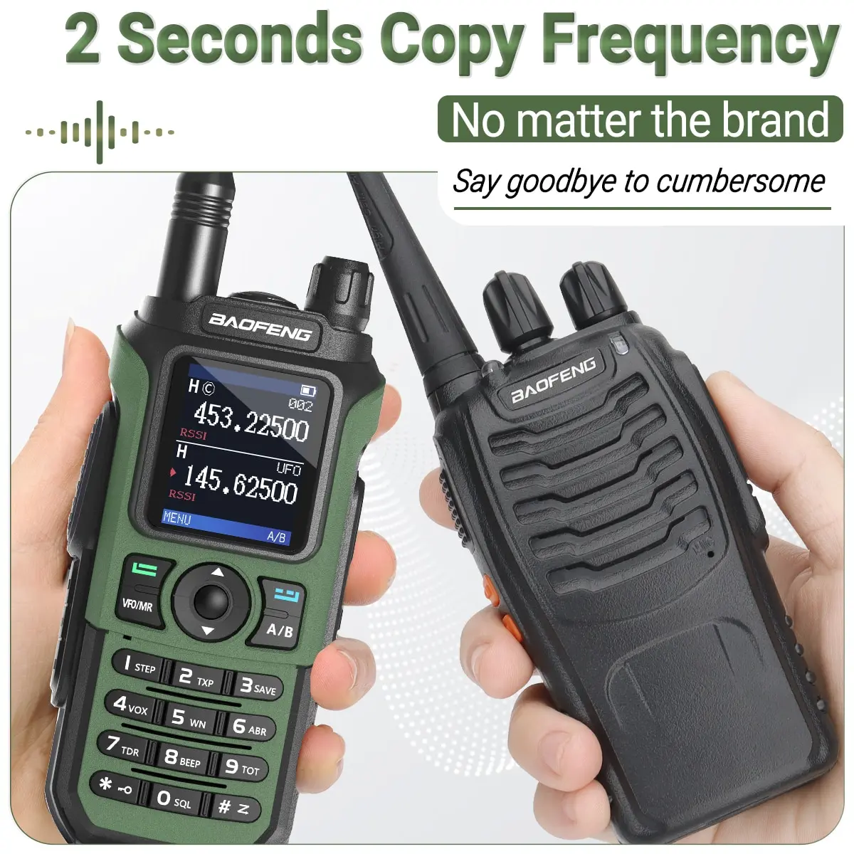 Нажмите кнопку меню, чтобы войти в интерфейс «FQSCAN». Снова нажмите «Меню», и UV-21 Pro выполнит поиск другой частоты радиопередачи и кода конфиденциальности. Наконец нажмите меню, чтобы сохранить частоту. Две рации могут нормально общаться. Общение беспрепятственно, и традиционная частота записи отклоняется.