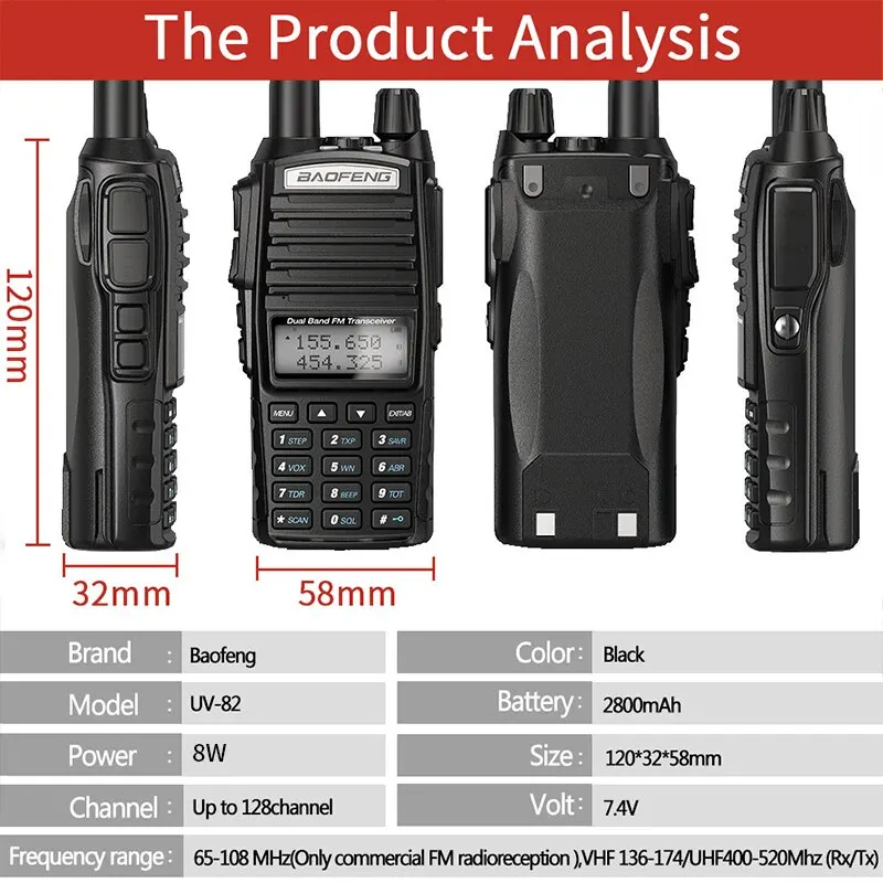 Портативная рация Baofeng UV 82, 5 Вт, 8 Вт