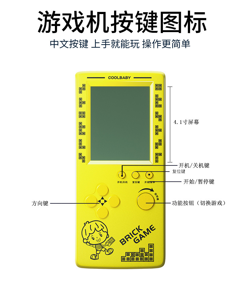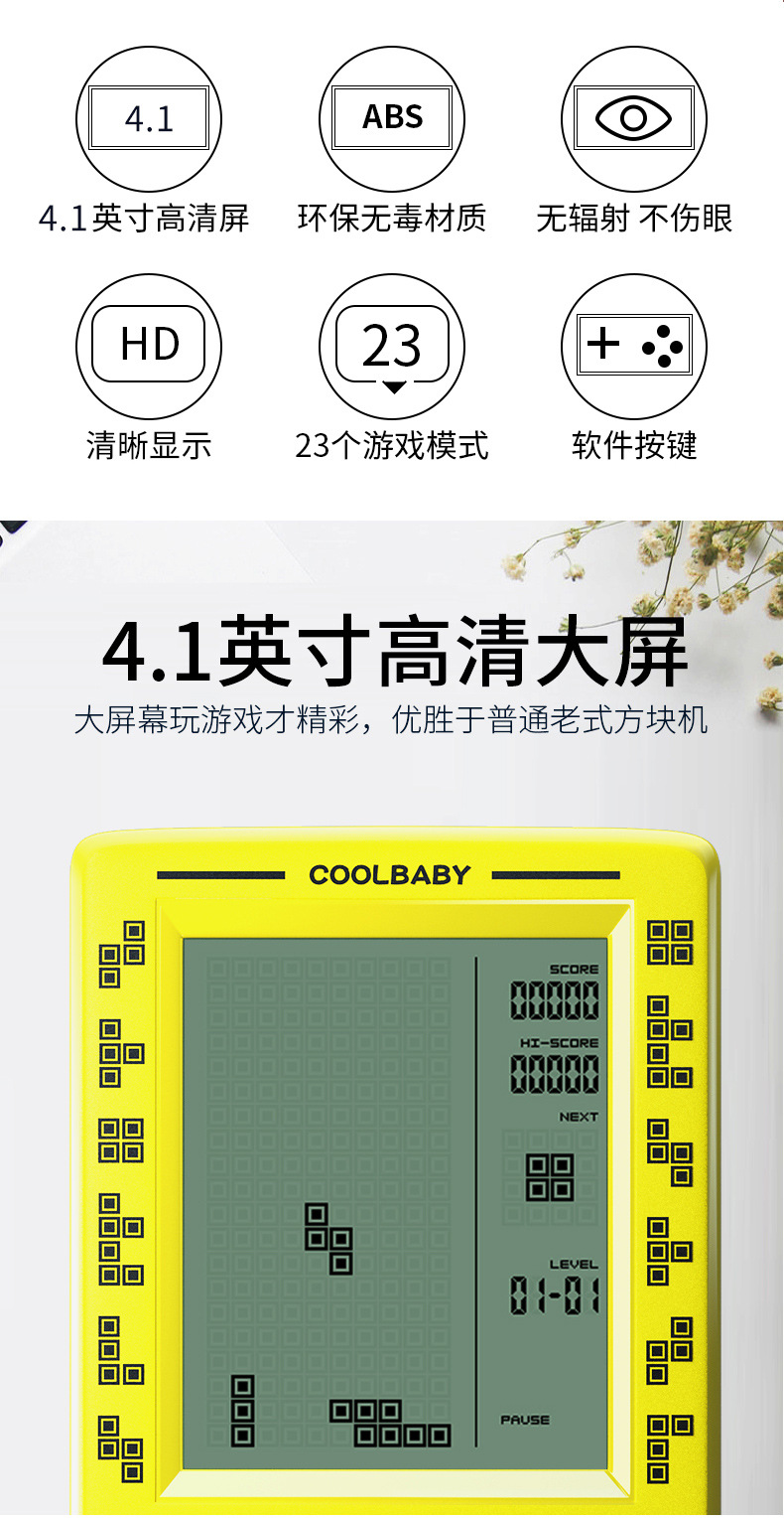 Портативная Ретро игровая консоль для тетрис с большим экраном 4,1 дюйма, Детская ностальгическая Карманная игровая консоль, детские игровые игрушки