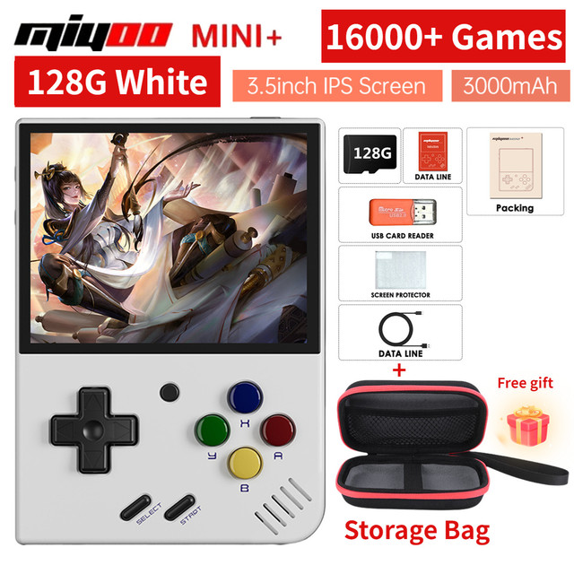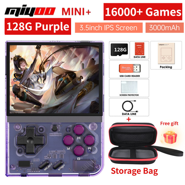 Портативная ретро-консоли Miyoomini Plus 3,5 дюйма, IPS, OCA, 128 ГБ, для видеоигр, 3000 мАч, поддержка PS1, GBA, GBC, FC