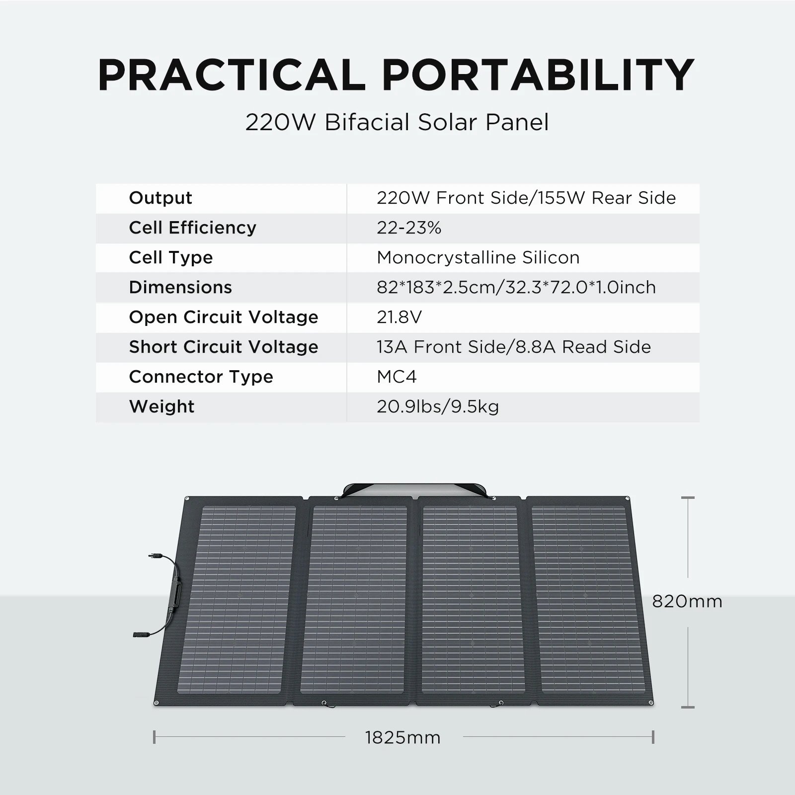Портативная складная солнечная панель ECOFLOW 220 Вт