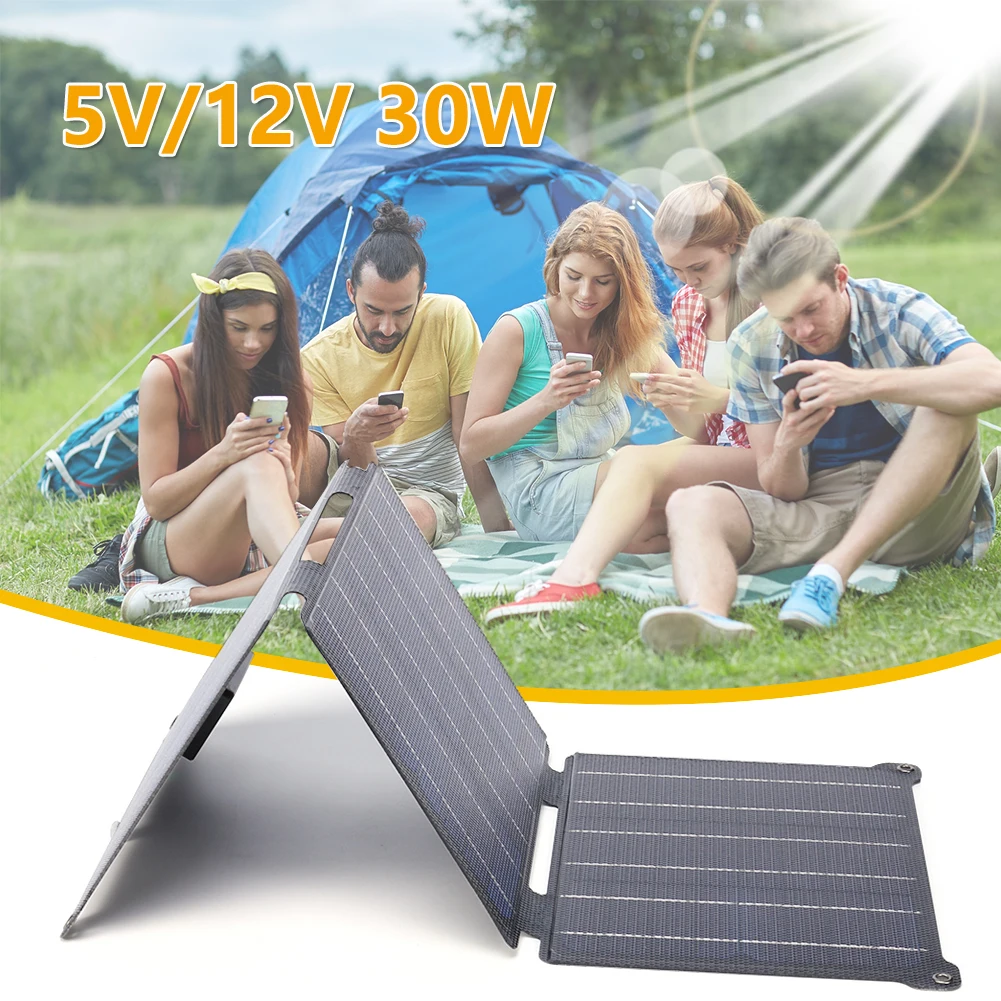 Портативная солнечная панель 30 Вт ETFE 5 В/12 В 2 * USB QC3.0 выход водонепроницаемый фотоэлемент солнечной батареи для зарядного устройства мобильного телефона