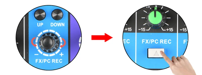 2) Нажмите кнопку «FX/PC REC», чтобы эффект входил в канал.