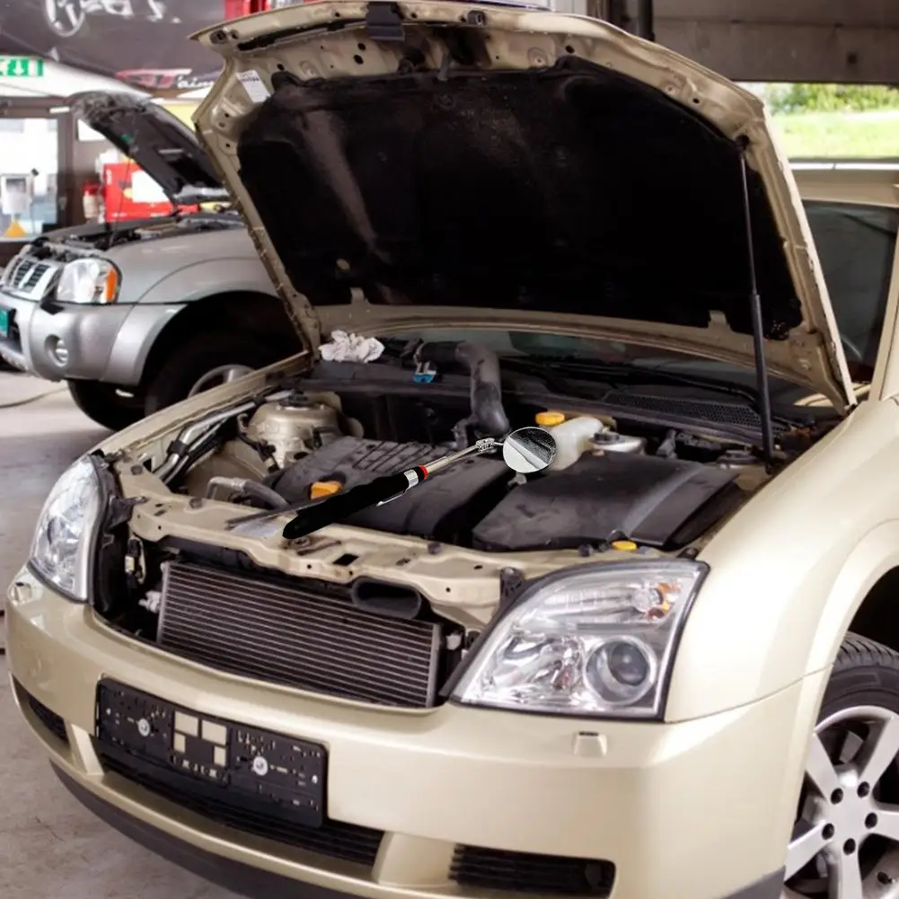 4. Телескопический стержень: это хороший инструмент для удовлетворения ваших потребностей в осмотре. С помощью телескопической штанги длину ручной штанги можно отрегулировать в соответствии с вашими потребностями. После использования его можно уменьшить до наименьшего размера, который удобно носить с собой и хранить. Зеркало на шее можно поворачивать на 360 градусов для удобного наблюдения за труднодоступной областью.