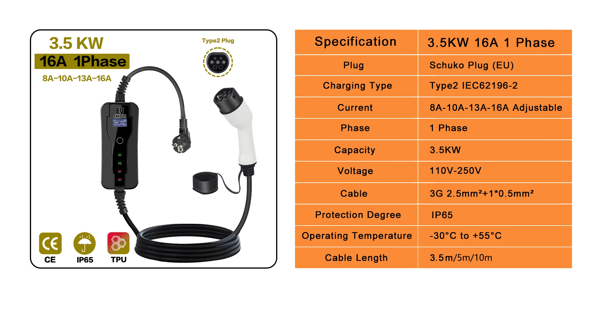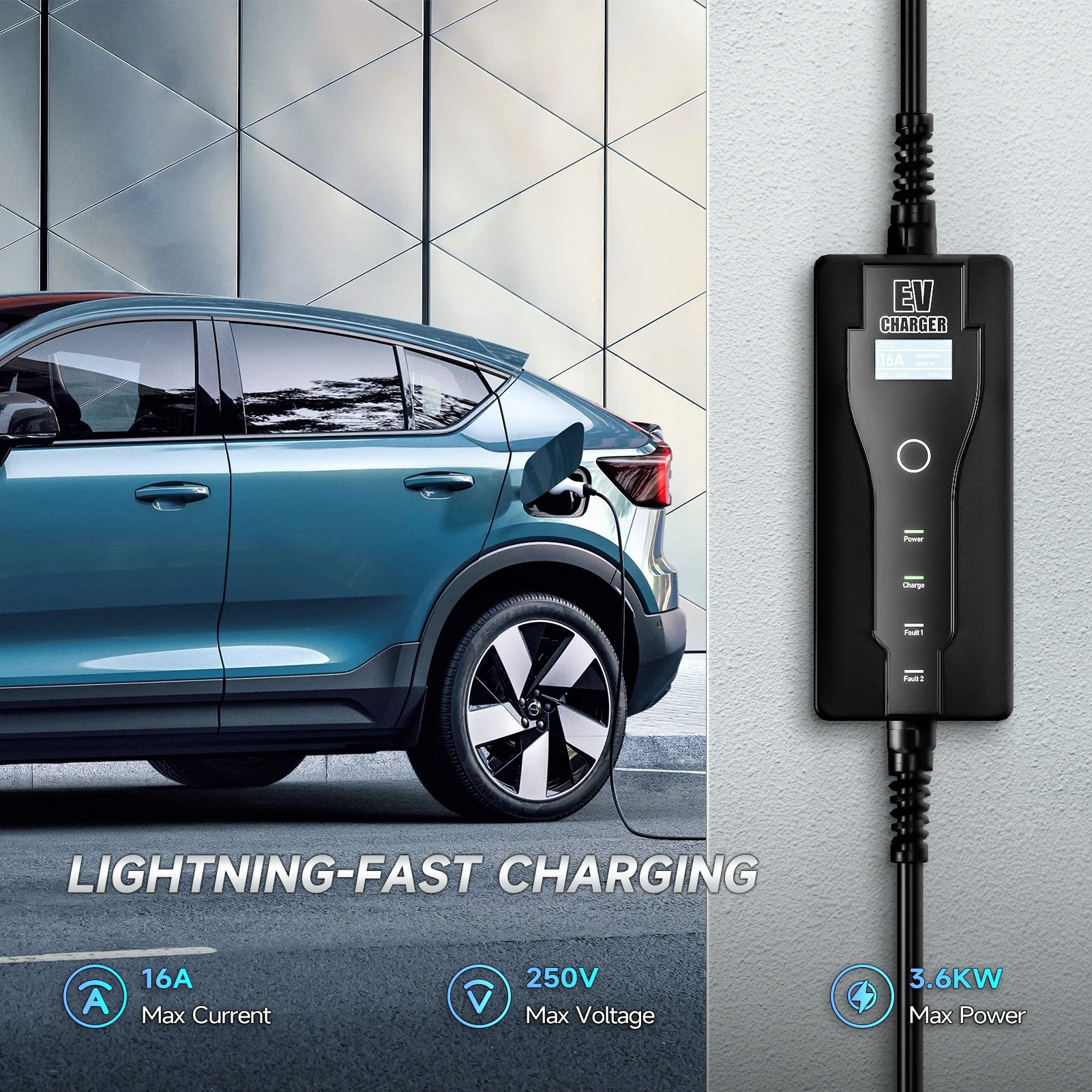 Портативный блок зарядного устройства для электромобилей позволит вам заряжать электромобиль. Если вы хотите Переключить ток, установите его перед подключением зарядного устройства к автомобилю. Зарядный кабель уровня 2 обеспечит в 3 раза большую скорость зарядки по сравнению с оригинальным зарядным устройством вашего автомобиля. Повышая напряжение 240 В и до 16 А, он обеспечивает быструю зарядку 3,5 кВт/час.