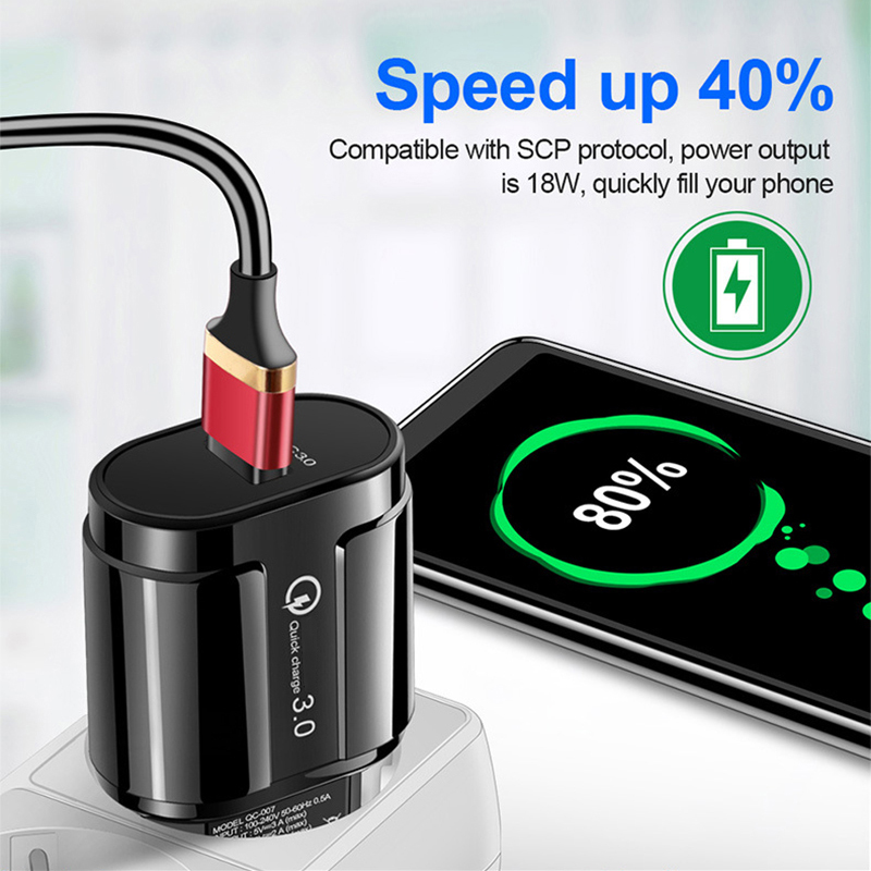 Быстрая зарядка 3,0 для быстрой зарядки: это настенное зарядное устройство, разработанное со сверхбыстрым портом Quick Charge 3,0, совместимым со всеми QC 3,0, обеспечивает до 4 раз более высокие скорости, чем обычная зарядка.
