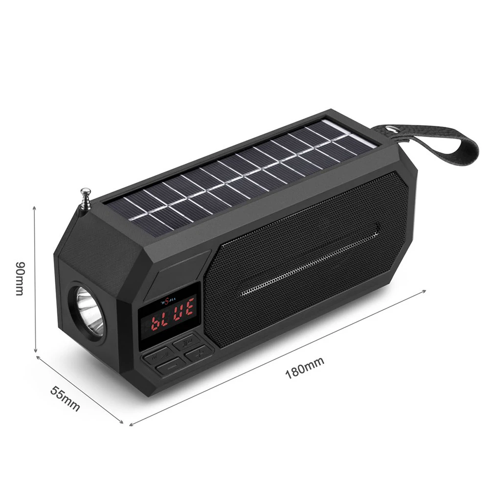 Портативный мини Bluetooth колонки Солнечный перезаряжаемый светодиодный фонарь фонарик с fm-радио mp3-плеер