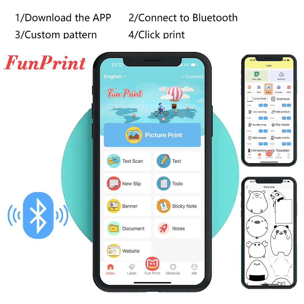 Портативные фотоэтикетки на клейкой основе без чернил, Bluetooth карманный мини-принтер, наклейки, 57 мм