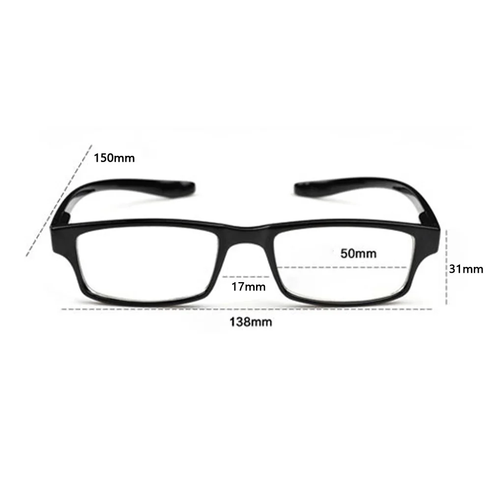 Размер: линзы очков 31*50 мм, расстояние между носом 17 мм, Длина очков 138*150 мм.