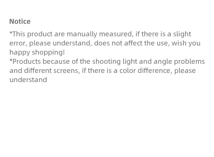 1. Пожалуйста, позвольте размеру небольшую ошибку, потому что она измеряется вручную, но не повлияет на использование, желаю вам приятных покупок