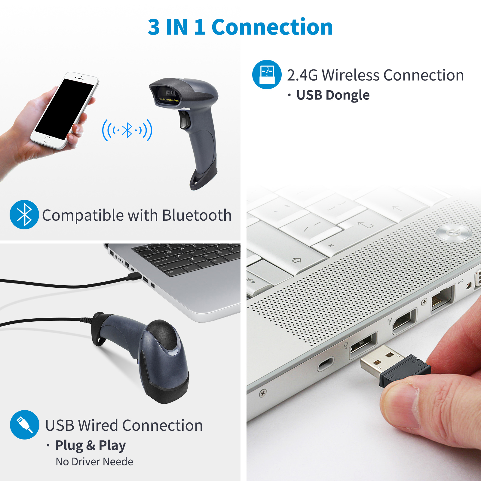 Портативный 1D беспроводной Bluetooth сканер штрих-кода, считыватель, беспроводная легкая зарядка 2,4 ГГц, беспроводной сканер для кассовых терминалов, для Mac/ Phone