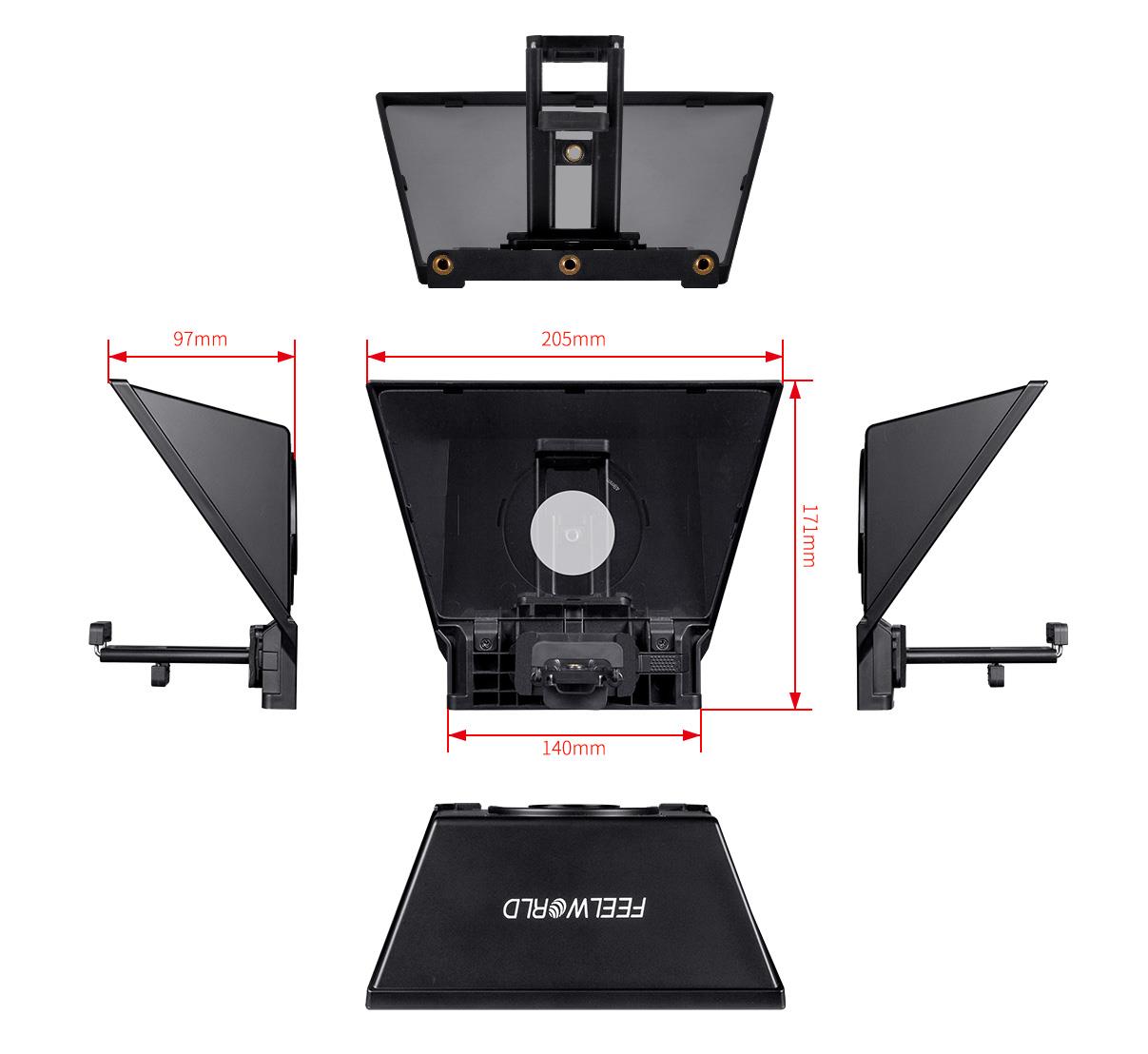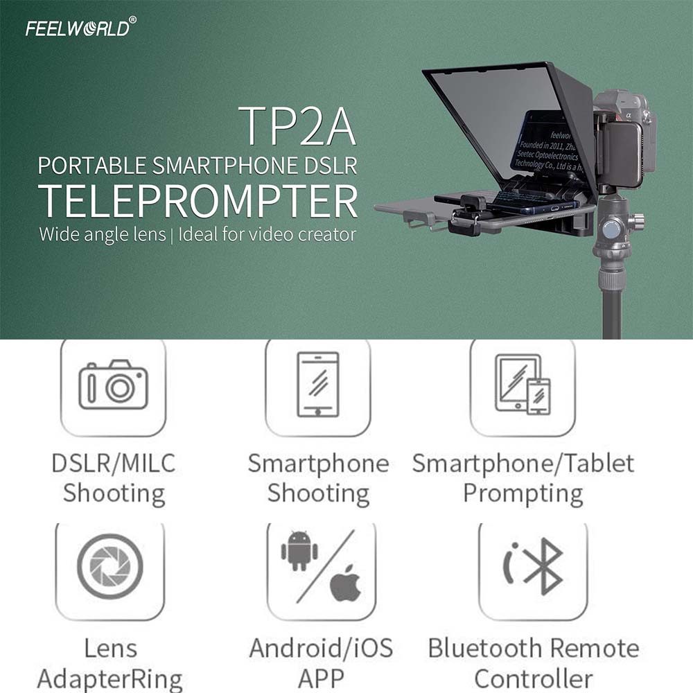 В настоящее время популярна прямая трансляция, особенно короткое видео. Чтобы сделать прямую трансляцию более профессиональной и эффективной, teleprompter стала незаменимым вспомогательным устройством. Это может помочь пользователям выразить свой язык гладко и еще больше сократить расстояние между якорем и зрителями. FEELWORLD TP2A-это легкий и портативный телепромпер, который оснащен стандартным разделителем луча, позволяет чётко читать прокрутки текста, заглядывая непосредственно в камеру, идеально подходит для vlog, прямой трансляции, онлайн-класса, запись видео, интервью, видеостудия, новости и презентация. Не нужно читать скрипт! Он может быть предложен через смартфон или планшет во время съемки DSLR камеры или телефона. Поддерживает широкоугольный объектив, приложение Android/iOS, дистанционное управление bluetooth, управление легко и удобно, делает видео быстрее и проще. Это идеальный teleprompter для видео, создатель программы.
