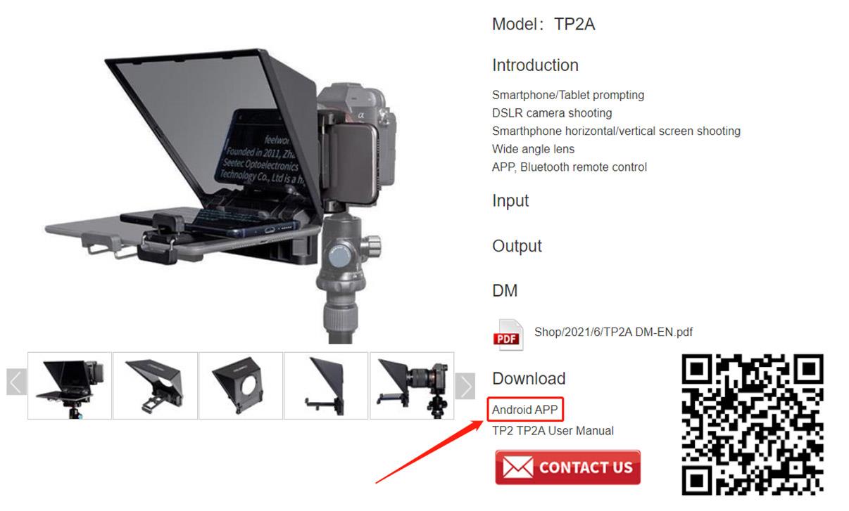 Приложение для смартфонов Android (название: FEELWORLD) можно загрузить в разделе «скачать» на странице сведений TP2A или отсканировать qr-код для загрузки.