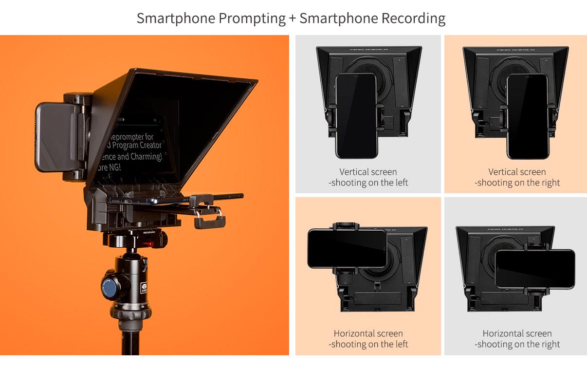 При съемке смартфона магнитный зажим смартфона, входящий в комплект TP2A, может не только удерживать смартфон на телепромпитере для съемки с горизонтальными или вертикальными экранами, но также позволяет легко снимать смартфон, чтобы следить за эффектом съемки.