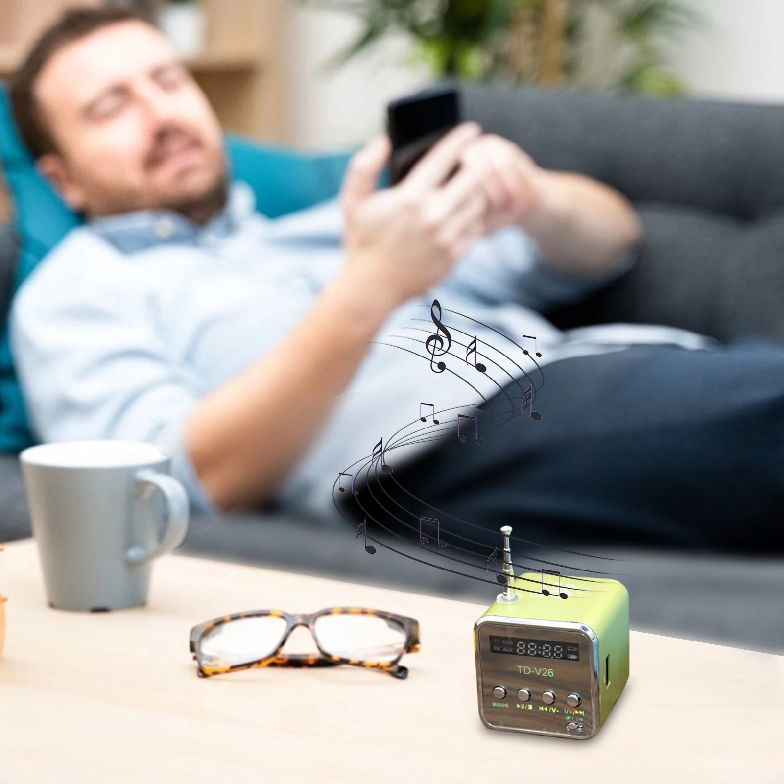 1. Дизайн Micro-/TF: Просто вставьте TF-карту напрямую для чтения данных и хранения музыкальных файлов. Будут светодиоды, указывающие, когда работает FM-радио.