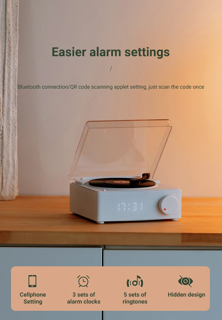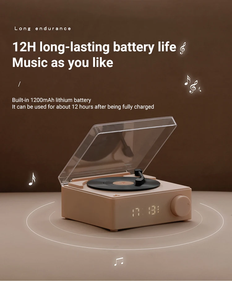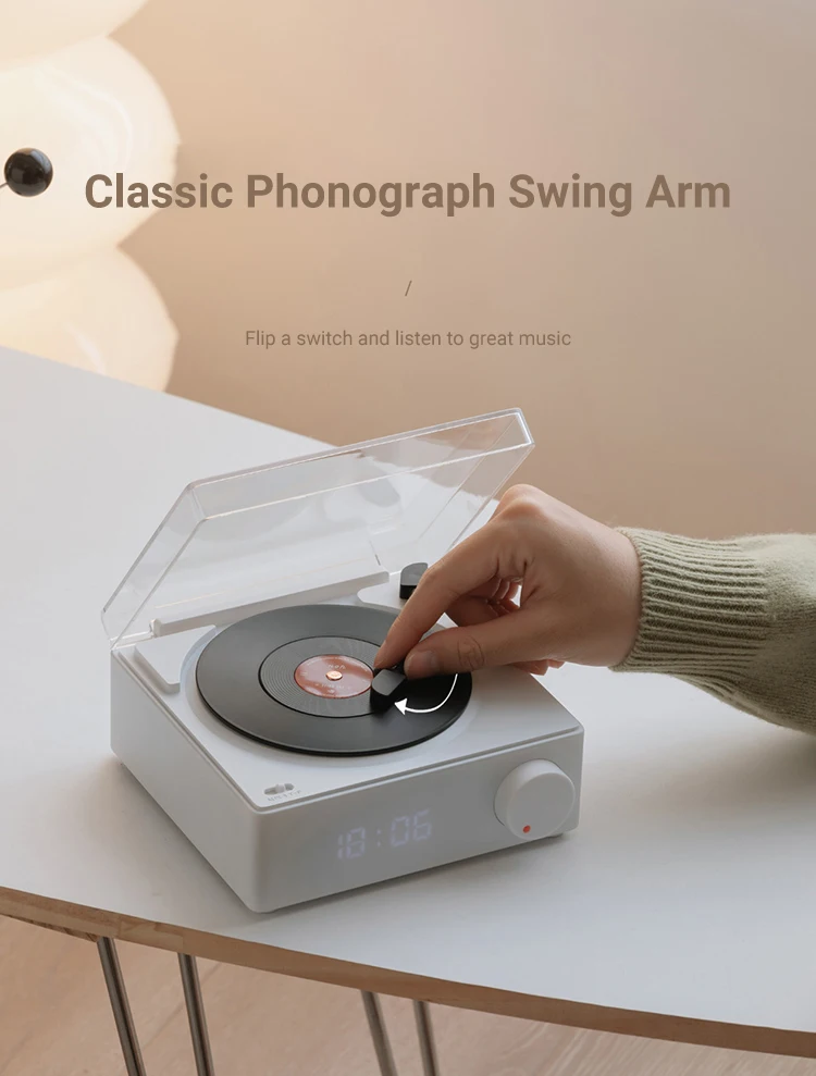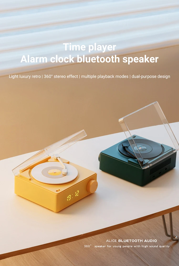 Фонограф Стиль Беспроводной Bluetooth Динамик Будильник Маленький Плеер Портативный Высококачественный Аудио Домашний Умный Стерео Подарки