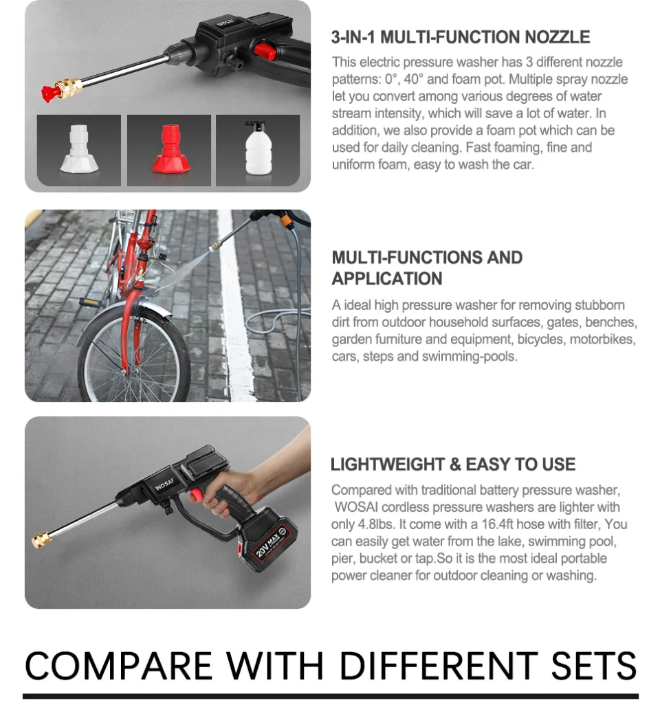 Портативный беспроводной пистолет для мойки автомобиля WOSAI