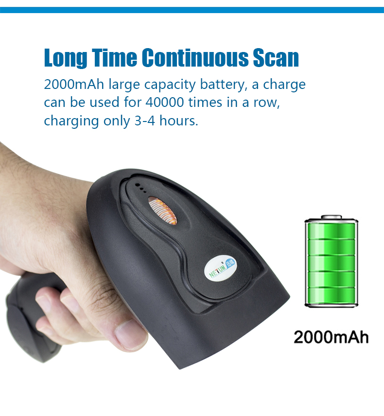 4. Аккумулятор 2000 мАч сжимает до 30 часов непрерывного сканирования для ваших запасов или рабочих часов, легко заряжается всего за 2 часа через прилагаемый usb-кабель для зарядки