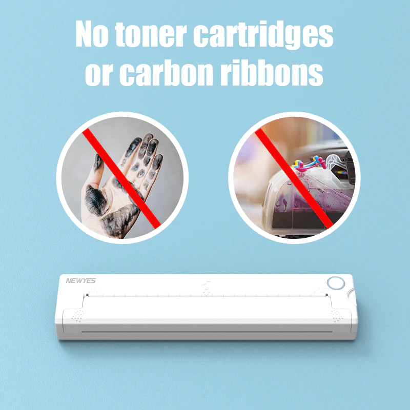 4. Печать без чернил: Портативный принтер использует термобумага для печати и не требует картриджей с тонером или угольных лент.