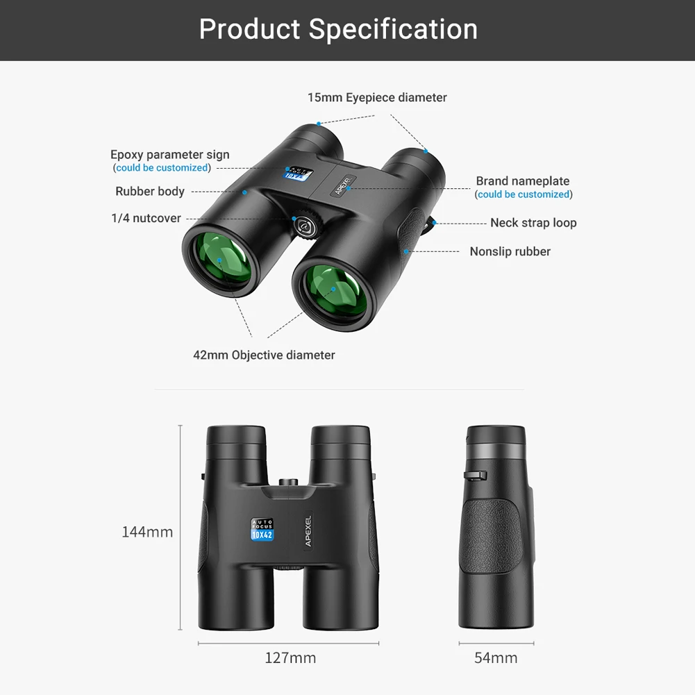 10х зум:Этот бинокль может предоставить 10X зум для получения более четких изображений, а расстояние вокруг глаз регулируется для удовлетворения различных потребностей.